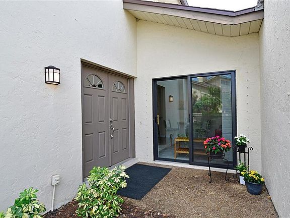 Three bedrooms, three bathrooms, fully updated condo on the 16th Fairway with GOLF and LAKE VIEWS and each bedroom boasting an ensuite bathroom. Kitchen has custom maple shaker style cabinets with under cabinet lighting, soft close drawers, tile backsplash, Corian countertops, and an abundance of storage. Breakfast bar, wet bar with glass-front cabinets, Instant hot water, water filtration system, a 5 burner stovetop, a warming drawer, and a breakfast nook complete this gourmet kitchen, perfect for entertaining. Waterproof vinyl planking on the first floor. Main floor bedroom offers built in cabinets, French doors, and modern fixtures in ensuite bathroom. Great room with vaulted ceilings and Travertine tiled wood-burning fireplace lead to the brick paved Florida room with sliding windows to enjoy the panoramic golf views and Florida breeze. Extra storage abounds in the cedar lined under-staircase room. Second floor has bamboo flooring throughout with two ensuites. Master suite features vaulted ceilings, balcony deck overlooking the lake and IMG golf course, walk in closet, large walk-in shower with porcelain tile and rain shower technology for a luxurious feel. Two car garage with extra room for a golf cart plus 2 private courtyards. Amenities include 2 pools, maintenance of landscaping and building exterior, cable, internet, and pest control. Roof 2018, gutters with leaf guard, newer water heater, newer reinforced garage door, Lexan windows, and hurricane shutters. Close to IMG, SCF, and beaches.