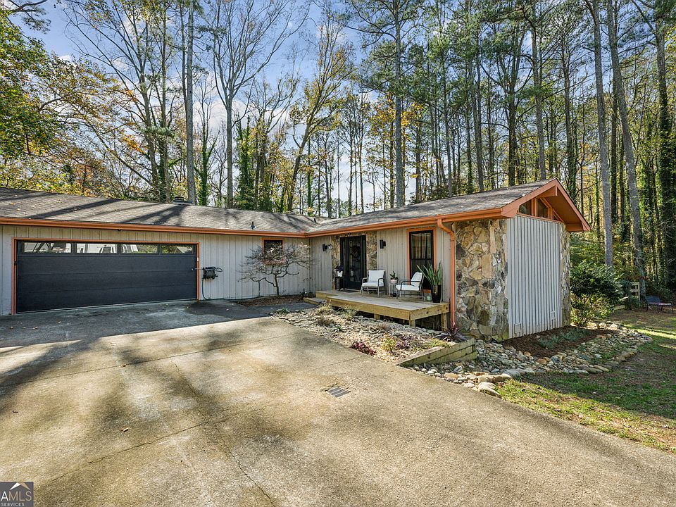 Beautiful 4 Bedroom, 2.5 Bath Ranch home in the Ridgeland Forest neighborhood, part of the esteemed Parkview High School Cluster. BRAND NEW Windows and Entry Doors from Quinn Windows, Brand New Tankless Water Heater, Updated Kitchen featuring a huge Center Island with seating, Brand New Smart Stainless Steel Appliances, gorgeous tile backsplash and open to the Fireside Living Room with views to the spacious back deck with jacuzzi, fenced yard with storage shed. Wood floors, Sun room, separate formal dining room, and second living room make this floorplan practical and inviting. Garage features extra storage and a workshop area. Its location at the end of a dead-end street means minimal traffic and a peaceful environment. This neighborhood has OPTIONAL HOA and there is an optional swim club. You can walk to the neighborhood pool through the woods from this home! Above all this home has character and charm and has been well-loved. Convenient to Highway 78, CDC, Decatur, Emory University, shopping, schools, parks and hiking trails.