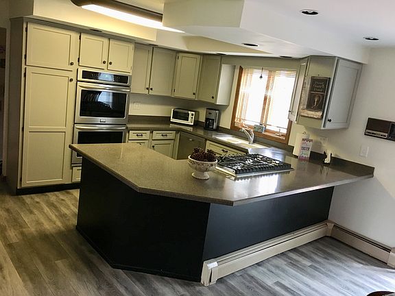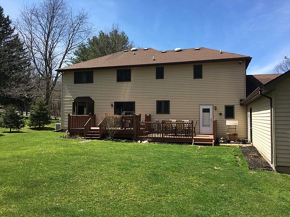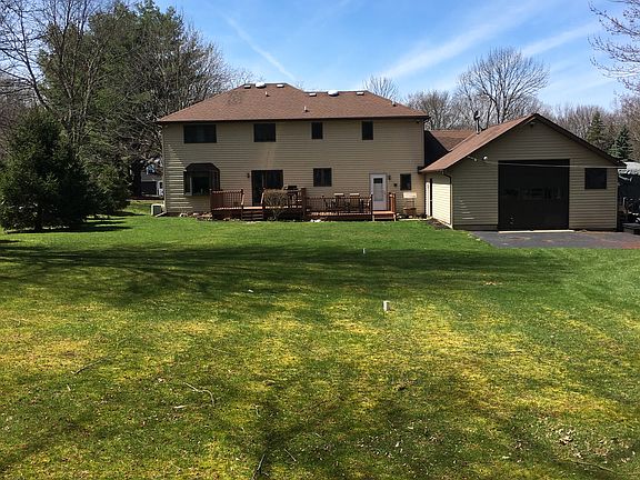 Welcome Home to this beautiful brick front 5 bedroom, 3 full bath home located on a beautiful lot with no rear neighbors and within walking distance to the Erie Canal. Newly remodeled kitchen with built in stainless steel appliances and corian countertops. Open floor plan with new wood grain laminate flooring. Master bedroom bath and walk in closet. Bedrooms are all generous size with double closets. Attached garage boasts a 32 x 24 heated rear area for the car buff, a man cave, or workshop. Basement rec room with tiled floor and gas fireplace. New high efficiency boiler and domestic hot water storage tank. Central air conditioning. Enjoy the outdoors on the rear two tier deck or watch the sunset from the covered front porch. Truly a special Home.