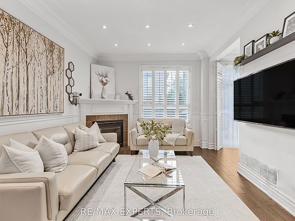 Welcome to this truly One-of-a-Kind, fully upgraded, Four-Bedroom Detached home located in the heart of Burlington's highly desired Alton Village. This Detached double car garage home is straight out of a luxury magazine. A grand double-door entry welcomes you into an inviting foyer featuring custom hardwood flooring and elegant wainscotting throughout the main level. The open-concept living and dining area is an entertainer's dream, bathed in natural light from oversized windows and featuring a cozy fireplace, abundant pot lights, and custom lighting fixtures. Inspire the chef within in the Custom Gourmet Kitchen, boasting upgraded countertops, a custom backsplash, and premium built-in stainless steel appliances within custom cabinetry. The upper level caters perfectly to a growing family, offering four generous-sized bedrooms, all complete with hardwood floors, large windows, and pot lights. The oversized Primary Bedroom is a private retreat, featuring a spacious walk-in closet and a luxurious custom 5-piece ensuite bath. The professionally finished basement significantly expands your living space, offering a large, flexible rec room-perfect for a home gym, playroom, or office-and a sensational bonus room complete with a built-in Sauna and integrated speakers for the ultimate relaxation experience. Step outside to your private oasis: a professionally landscaped backyard featuring mature greenery, creating an ideal setting for entertaining or quiet unwinding. This is the definition of move-in ready luxury. Don't miss this opportunity!