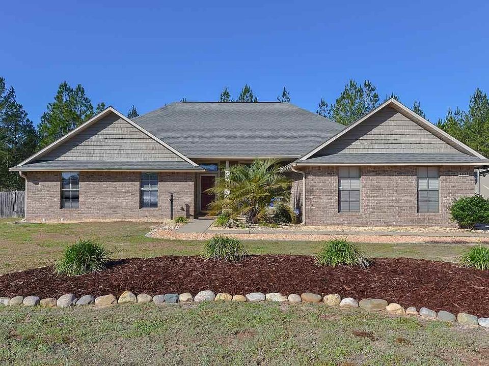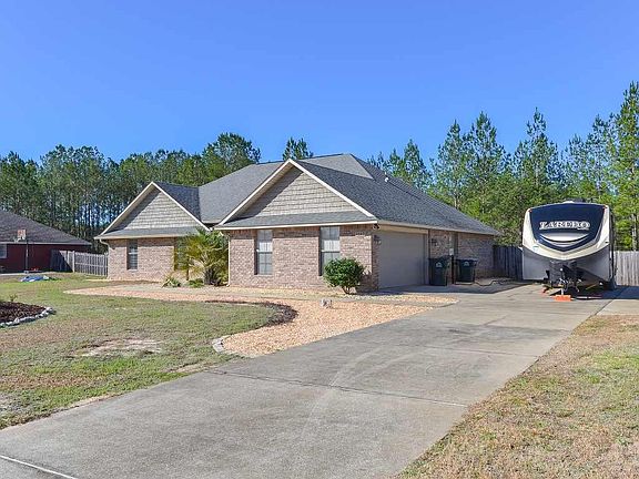 Minutes from Navarre Beach on the completed four lane project for SR 87. One of Thomas Homes best models to date. Not the over-sized behemoths that they are building now, but the more economical houses without a lot of wasted space. Upon entering this great home you will notice the updated paint job throughout the house with high end Sherwin Williams paint throughout. On your right you will see the formal dining area and to the left you will see the office area with double door entry that can also serve as a bedroom with a very adequate closet. From there it flows into the living area with the large eat in kitchen with granite throughout, and the large 3' x 4.5' center island. Whirlpool stainless appliance package. New Kenmore stove/oven installed 2018. On the other side of this split plan are the other two bedrooms and additional full bath. Bull nose cornering throughout the house. This house sits on an acre of land which goes back a great deal more than the fence line. Only half of the lot is cleared with an additional 1/2 acre of woods. Set up your private viewing for this highly coveted area today before this one goes away.