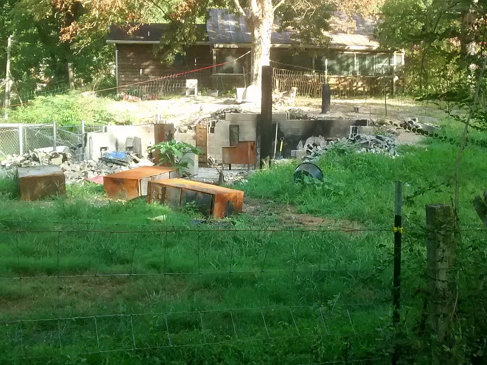 Foundation held up by logs in basement that leaks and pools stagnant well water