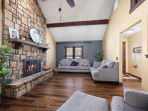 Are you ready for this one? Nestled in the sought-after Prairie View Heights subdivision, this stunning 5-bedroom (one non-conforming), 2.5 bath home boasts three spacious floors of thoughtful design and comfort. Picture yourself unwinding by one of the two cozy wood-burning fireplaces or entertaining in any of the three fabulous living areas - that's right - THREE living areas! The kitchen features granite countertops, custom cherry cabinets and sleek stainless steel appliances, perfect for whipping up your favorite meals. You're gonna love the engineered hand-scraped hardwood floors, spacious feel of the vaulted ceilings, the updated bathrooms, the laundry room on the main level (with washer and dryer included) and easy access from the 2 car garage. This home has a newer roof - only 2 years old and all new windows within the last few years. Make this your home sweet home in time for summer BBQ's and family volleyball in the backyard! Large community pool and clubhouse is within walking distance.