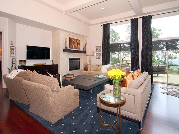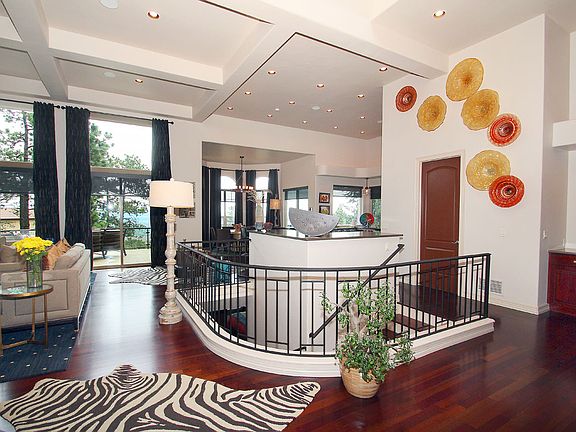 Beautiful rancher on private, secluded lot with fabulous city and mountain views. The main level features 18' ceilings in the main living areas and Brazilian cherry floors. Great room with soaring ceiling, rock fireplace, and 2 walkouts to large deck. Gourmet kitchen with professional grade stainless appliances, granite countertops, pantry, island and walkout to deck. Charming pentagonal shaped breakfast nook. Master retreat with 3-sided fireplace, large sitting area, and arched windows. Master bath features tile and travertine, jetted tub, glass block shower, and double vanities. Lower level with 10' ceiling & walls of glass.