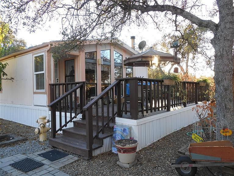 Well maintained and upgraded manufactured home on foundation. Vaulted ceiling and large picture window make this home feel very open and bright. Wood stove in living room. Large open kitchen. Home was remodeled in 2005 with new roof, new kitchen and baths. The property is mostly all usable. Fenced and cross fenced. Electronic gate. Several out building including a chicken house. Garage + 2 carports, potting house, RV parking with power, water & septic hook ups. Out side utility room with washer and dryer hook up, as well as inside. The indoor laundry is currently being used as an office. Wonderful rock formations large wood deck not to mention the deck built on a large slab of rock. Perfect for entertaining. A must see to really appreciate it.