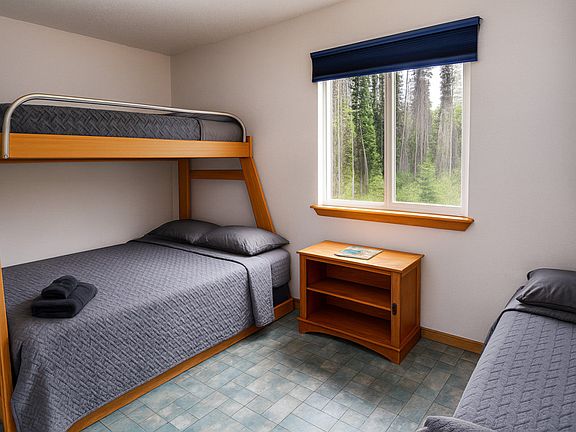 Welcome to the Dolly Varden Cabin at Lower Kenai Lodge, a private retreat with a full bathroom and kitchen, just a short drive to the Kenai River. This cozy studio cabin features two Twin-over-Full bunk beds, comfortably accommodating up to six guests. The Dolly Den is thoughtfully designed with a fully equipped kitchen, including a refrigerator, stove, microwave, and cookware, as well as a dining and seating area for meals or relaxation after a long day. Pets are welcome at this pet-friendly property for $10 per pet, per day. Guests are required to pick up after their pets, with a $10 charge per exterior location if not cleaned. Unauthorized pets incur a $250 fee. Service Animals are permitted at no extra cost. Centrally located between Kenai and Soldotna, this cabin is close to everything the Kenai Peninsula offers, from sightseeing and fishing to simply enjoying the peace and quiet. It's just a 5-minute drive from the Kenai River and within easy reach of local airports. Smoking or vaping is prohibited on the premises, with a $200 per day fee for violations. Quiet hours are from 10:00 PM until sunrise. Early check-in and late check-out requests are subject to availability and a fee of $15 per hour. Unauthorized late check-out incurs a $50 fee per hour. The water is not potable, so guests should bring drinking water. Outdoor security cameras may be in use, and maintenance may occur during your stay with prior notice.