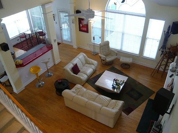 Immaculate home features wood grain laminate floors main lower living,fresh paint & updated kitchen w granite & popular white cabinets.SS Appliances w gas stove,wine cooler.Open plan.GR has built in shelves,gas fp & vaulted ceiling while open to kitchen & breakfast.3 BR & Loft up.Hge windows give tons of light.All season porch has glass & screen sliding doors - open them for a covered porch.Enjoy the gunite pool & entertain on the oversized patio.Privacy fence.NEW HVAC 2016.ROOF 2012.Corner lot.