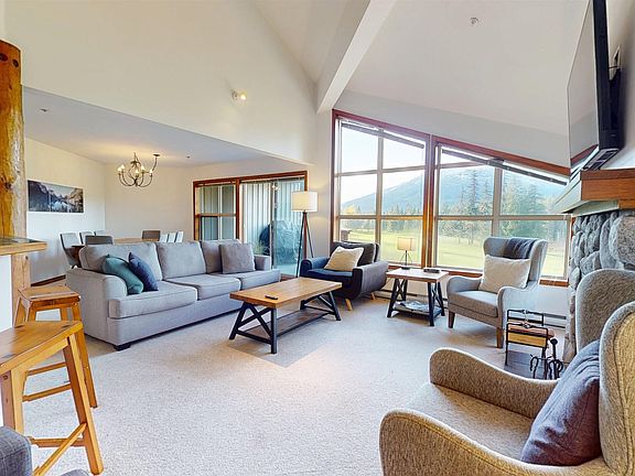 Set along the 1st fairway of the Chateau Whistler Golf Course, Blackcomb Greens #4 is a private retreat featuring 3 bedrooms, 2 bathrooms, and an ideal blend of serenity and sophistication. Positioned at the front of the complex, it offers unobstructed golf course frontage and a peaceful, natural setting. Vaulted ceilings, expansive windows, and abundant light frame stunning fairway vistas throughout the open living spaces and primary suite. The spacious layout sleeps 8+, perfect for family or entertaining. Enjoy direct access to the Valley Trail, walk or bike to Lost Lake and Whistler Village, or take the free winter shuttle to Blackcomb Base. Owners enjoy a large outdoor hot tub, dedicated parking, ample guest parking, and Phase 1 zoning for nightly rentals and unlimited personal use.