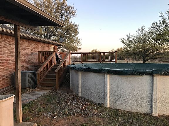 Bring your rocking chairs and enjoy this beautiful countryside views on the front and back porches! True country home in Rush Springs School District. Ready-built Stratford home moved to the 5 acre site in 2000 and later bricked. Open living/dining/kitchen area with open concept. Bedrooms all have oversized closets; two of the bedrooms have real wood floors. Home has a possible 4th bedroom or office as well as an oversized laundry area with sink. Master bath included a large walk in closet. A three car detached garage and separate well house which houses pump & water softener. Two water wells in the Rush Springs Aquifer; only one with pump.Covered deck on the back of the house with a terrific view. Above ground pool (new in July 2015) stays with the home. This is not a mobile home! Pipe fence around loafing shed is reserved. Marlow is approximately 7 miles away; however, this is a Rush Springs School district.