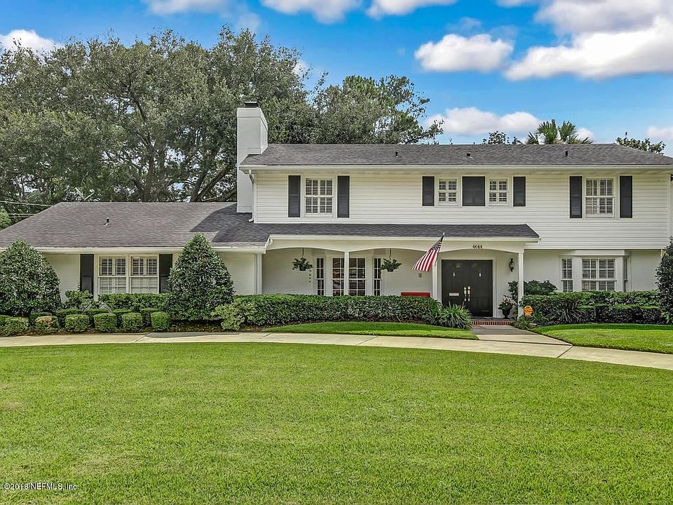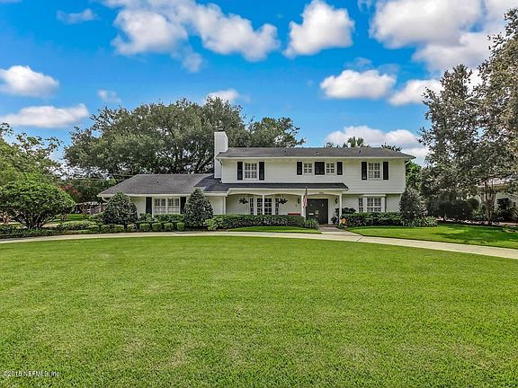 Amazing opportunity to live on the water in Ortega Forest! This home has everything you need with spaces to entertain inside and out. Downstairs offers a guest room/office with adjacent full bathroom, eat-in kitchen and dining room. French doors overlooking beautiful pool, deep backyard and canal. Upstairs you will find master suite with built-ins and walk-in closet. Three additional bedrooms share hall bath. The backyard is paradise. An inviting pool, summer kitchen with mounted TV. Amazing treehouse, swing and a charming gazebo, Everything you need to enjoy Florida living. Hardwood floors in DR and LR newly replaced, crown molding and plantation shutters throughout. This home is in the A-rated Stockton school district, close to NAS, Avondale, Riverside and downtown