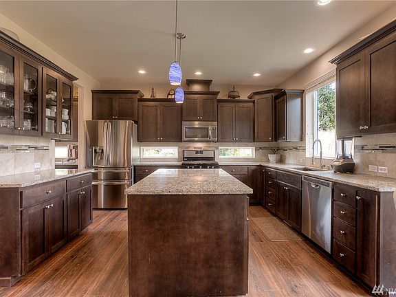 Impressive 4BR + bonus, 2.5BA home in coveted Sunset Hollow neighborhood. This 2575 SF home has been upgraded! Kitchen features granite countertops, SS appliances including 5 burner gas range. Great room has large sliders leading to outdoor living space with gas FP, perfect for entertaining! Lovely wrought iron railing on staircase. Corner, fully fenced, lot. Easy commute to JBLM!