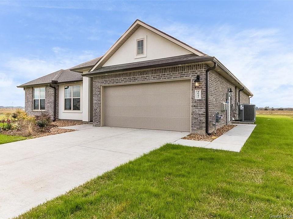 'St. Pierre EB' The St. Pierre plan has a welcoming flow with 4 bedrooms and 3 baths. The open concept living, kitchen, dining area overlooks a corner back patio that is perfect for relaxing. The kitchen is designed with sleek cabinets, granite countertops and a subway tile backsplash and is equipped with stainless steel appliances that include a gas stove, dishwasher, and micro hood. This home is settled in Ridge at Morganfield, a new construction community with a Homeowners Association. This home comes with a 10-year warranty. All homes offer smart home automation, wood laminate flooring, fully sodded yards, and electric garages with garage door openers.