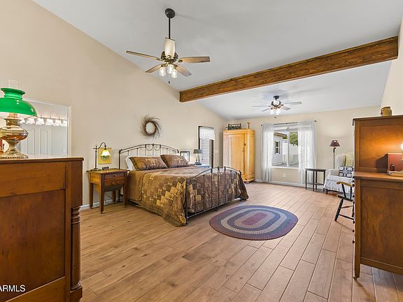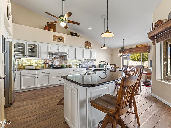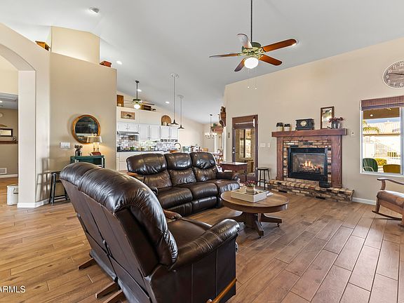 Stunning Custom Home with RV Garage, Pool & No HOA! Welcome to this beautifully designed custom-built 4-bedroom, 2.5-bath home, offering 2,730 sq. ft. of living space on an expansive 16,931 sq. ft. lot. This exceptional property boasts an oversized extended 3-car garage plus a separate 16x34 RV/Shop garage, providing ample space for all your vehicles, toys, and storage needs. Step inside to a thoughtfully designed open-concept floor plan featuring porcelain wood-look tile throughout. The remodeled kitchen is a chef's dream, complete with granite countertops, a tiled backsplash, stainless steel appliances, double ovens, a concealed microwave, a spacious kitchen island, and abundant cabinetry. The fireplace in the great room adds warmth and ambiance to the space, making it perfect for relaxing or entertaining. The expansive primary suite is a true retreat, featuring a jetted soaking tub, walk-in shower, huge closet, and dual vanity. The split floor plan ensures privacy, with walk-in closets in all four bedrooms. Enjoy the best of Arizona outdoor living in your resort-style backyard, which includes a pebble tech play pool (built in 2016), a grassy play area, fire pit, and an extended 500 sq. ft. paver patioperfect for gatherings. A separate gated area provides space for a garden or pets. No HOA fees, Two A/C units (2019), Roof in 2016, Water softener & central vacuum system included. This home offers the perfect blend of comfort, functionality, and outdoor enjoyment. Don't miss your chance to own this incredible property!