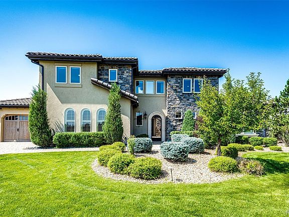 Entertainer’s Dream - Experience the ultimate OASIS in Colorado luxury living in the prestigious Pradera golf course community. The well-designed floorplan flows effortlessly throughout with a sophisticated and extremely functional layout with expansive views of the golf course, the neighborhood, and the foothills.  On the main level is a great room, gourmet chef’s kitchen with butler’s pantry, formal dining room and a custom-built wine room with access to the rear covered deck - ideal for enjoying the Colorado evenings! SMART HOME GALORE- The home is equipped with smart technology so you can control the lights, pool and outside speakers with monitors throughout the home. Oversized, finished 3-car garage with built-in cabinets and a Tesla charger. The walk-out lower level leads you to the most breathtaking outdoor space designed to perfection with an infinity-edge pool complete with a spa, waterfalls and a firepit. The pool house is perfect for all your hosting needs, complete with a steam shower and dry sauna. Additional Guest House with separate entrance off courtyard includes living room, kitchenette, bedroom, and bathroom. Complimenting this extraordinary home, the neighborhood has a full list of amenities including Pradera's exciting golf club. Living at Pradera gives you much more than a place to hang your hat. It’s a place to truly live.