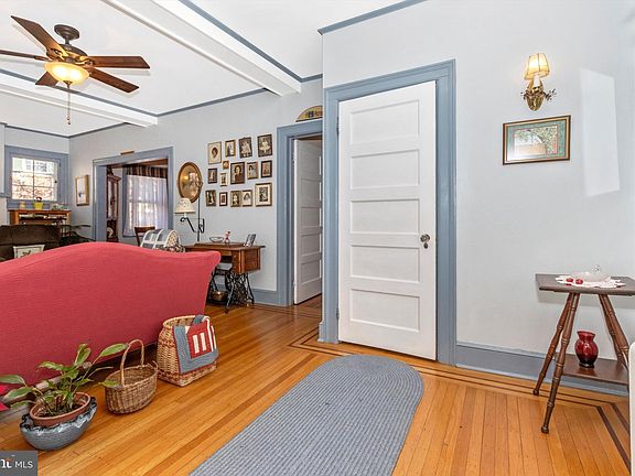 This impeccable Craftsman Bungalow with 2 MAIN LEVEL BEDROOMS is a stunning example of classic architecture combined with modern and updated amenities. Perfectly situated with stunning views of gorgeous parkland. Features include a large and inviting front porch, 9 foot ceilings, lovely hardwood floors throughout, a brick fireplace, and a large rear yard with patio. Large windows provide incredible natural light. A bright and roomy Den/Studio/Office on upper level could also be 5th Bedroom. Located in sought-after and tree-lined HUNTING RIDGE, a CHAPS historic-designated neighborhood. Convenient parking pad and GARAGE (with electric) in rear. A massive unfinished basement with powder room, workbench, and built-ins is ready for your vision! This is a truly sweet home, which has been lovingly cared-for and beautifully maintained - newer architectural grade roof, newer hot water heater. Freshly painted. Convenient to everything and minutes from Downtown, Catonsville, Ellicott City, Columbia, BWI, MARC, Amtrak, I-70, 695, 95, and beyond! This is the one you've been waiting for! The home is located within a CHAPS-designated historic district.