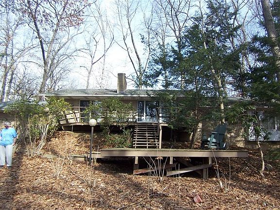 Unique 2 level one owner home! Total of 4 lots, one on either side were purchased to keep someone from building close. Wooded 2.26 acres with deer tracks everywhere! Only 4 steps separate it from being a ranch! Enter front door foyer, hall to 3 bedrooms and 2 full baths both w/double sinks. $17,000 handicap walk in tub just installed and never used! Master has bath w/tub and separate shower and walk in closet! Return to the foyer and up 4 steps to living room with beamed cathedral ceiling, family room with beamed cathedral ceiling, slider to rear deck and woodburning fireplace between the 2! Formal dining room and eat in kitchen! Down 4 steps to 2 car garage and laundry room with half bath! Large unfinished basement and concrete crawl spaces for storage! Pool table stays! All appliances and central vac! Roof 3-4 years old! Needs updating but you can't beat the private treed lot and all this home has to offer!