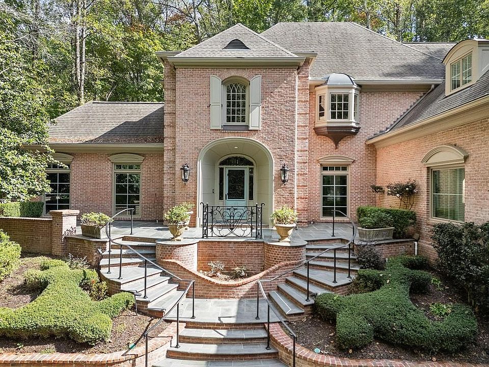 Privately nestled in Sandy Springs, this stunning brick home features three full living spaces including the main house, the terrace level, and the separate guest house. Beautifully landscaped grounds including a cascading stone waterfall, immaculate details throughout, and the added convenience of an elevator truly make this home one of a kind. As you make your way to the house, you'll notice the welcome truly starts on the exterior - a sprawling 2-acre estate featuring a mature landscape for added privacy. You are greeted by stone dual staircases that lead to the front door. Upon entering you will notice the grand foyer, with beautiful hardwoods featured throughout the home. Complimenting this space are the high ceilings and a beautifully intricate railing along the staircase. Welcoming natural light in every space, you'll notice main spaces feature large floor-to-ceiling windows and doors that allow the home to be flooded with daylight. Continuing into the house the charming formal living room features breathtaking floor-to-ceiling windows that capture the picturesque views of the backyard. The elegant dining room is accompanied by a butler's pantry and a sophisticated wet bar, creating an ideal space for entertaining. The living room showcases large windows, french doors, and a stunning masonry fireplace. Also conveniently located on the main floor is a richly appointed study featuring elegant wood paneling and a matching wet bar. The chef's kitchen is beautifully designed with high-end stainless steel appliances, including the convenience of two dishwashers, white cabinetry, and an oversized island. The beautiful stone backsplash and countertops compliment the slate blue island and stone flooring. A perfect breakfast area overlooks the backyard. Additionally this home is equipped with a dog bath and three laundry rooms. On the upper level, the luxurious light-filled primary suite stands out with its elegant French doors and floor-to-ceiling windows that frame stunning views of the surrounding landscape. Featuring custom built-ins, wonderful closet space, a dressing room or bonus space, and a spa-like bath. The spa-like bath has impeccable details, from the light fixtures to the tile and stone countertops. This space offers double vanities, a delightful window nook, and a luxurious soaking tub and rain shower. There are three guest rooms, each a suite with wonderful details and great closets. A versatile flex room that overlooks the foyer and grand staircase; this space can easily be transformed into a bedroom, playroom, or office. The terrace level features the perfect guest suite, with a full kitchen, living space, bedroom, and bath. The ultimate space for guests to stay that could be used as an in-law suite. A separate guest house is a special aspect of the property, setting it apart. Complete with a garage, full kitchen, inviting living room, a bedroom, laundry room, and a full bath. The backyard resembles a storybook scene, featuring a flowing stone waterfall, lush gardens, and an outdoor fireplace crafted with exquisite stonework. Ideally situated between the vibrant neighborhoods of Sandy Springs and Buckhead, this stunning property offers seamless access to all that Atlanta has to offer.