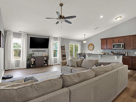 Beautiful home on a great lot in Walker Farms. Home is warm & inviting with an open, split bdrm floor plan. Nice covered front porch welcomes you to the home. Entrance leads to a large Great Room w/vaulted ceiling & is open to Breakfast Room, Dining Room & Kitchen. Kitchen has a breakfast bar, granite counters & upgraded SS appliances. Very nice Primary Suite has an updated bathroom & walk-in closet. Newer LVP flooring throughout. The back yard is truly a retreat with a huge patio overlooking pond (great fishing), lots of green common space & walking trail. It's a nice "out in the country" feel yet minutes to tons of amenities & major access roads. Come take a look. You won't be disappointed.