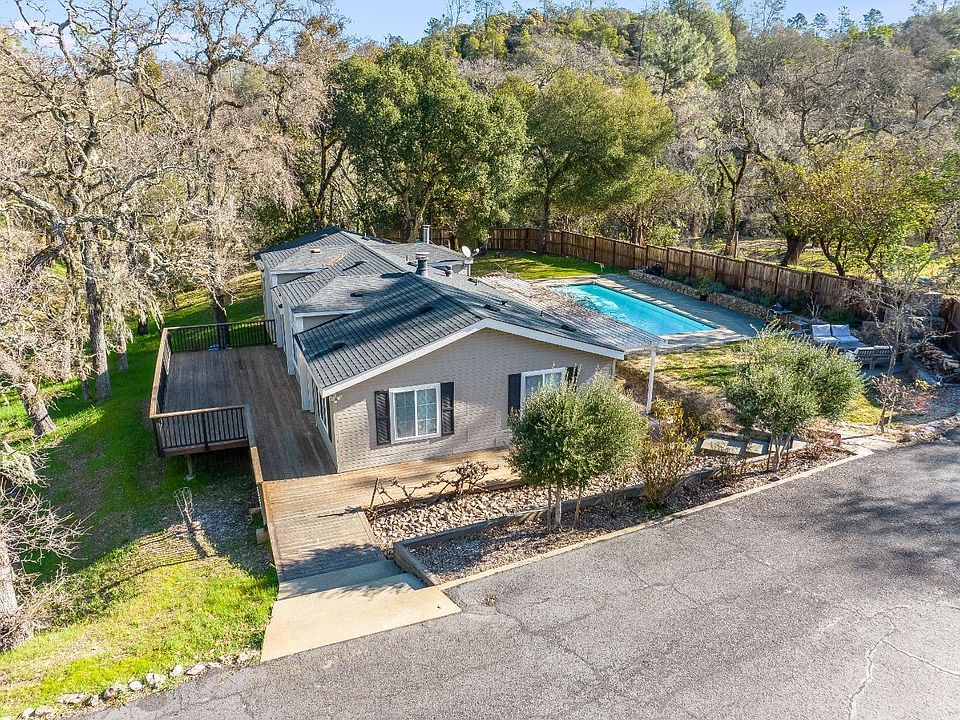 Contemporary Napa County haven perfectly sited on 2.35 +/- bucolic acres. Interior tones and decor is thoughtfully curated throughout the living space utilizing the natural light and artwork to create a warm and vibrant experience. Inspiring outdoor living has many treasures to explore including an in-ground swimming pool, natural stone hearth, top notch tree fort, and seasonal brook. A newer detached 792+/- sq ft workshop/garage evoking a spirit of creativity to enhance your existing artwork, or perhaps start a new hobby. Explore your backyard and make every day an exciting adventure.