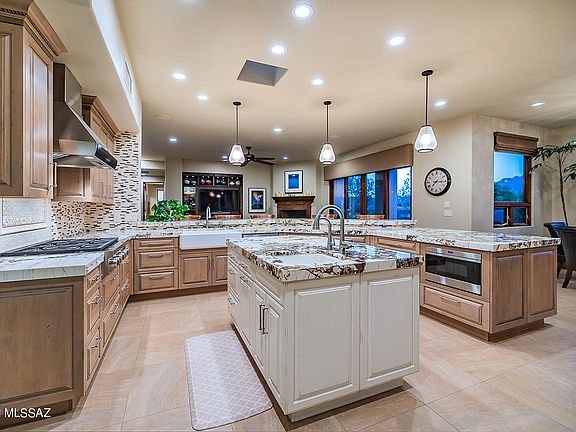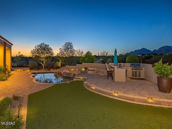 Spectacular custom 4BD/4BA (4,585 sq ft) estate on premium 3.3 acre cul-de-sac lot in gated Catalina Foothills Estates. Boasting resort-style living with panoramic mountain & sunset views, this impeccable home is complemented by formal & informal living spaces showcasing wood beam ceilings, skylights and picture windows. Expansive Great room w/FP offers a professional kitchen w/center island, high-end appliances and gorgeous slab granite. Elegant Owner's suite hosts FP, dual closets & luxury bath w/dual vanities, soaking tub & walk-in shower. Two en suite guest rooms, exercise/4th bedroom, office, plus pool bath. Retreat to the expansive rear yard w/extended patios, spa, heated pool w/rock waterfall, firepit, outdoor kitchen and awe-inspiring views. Perfect for the most discerning buyer!