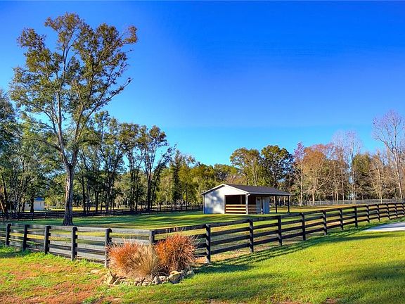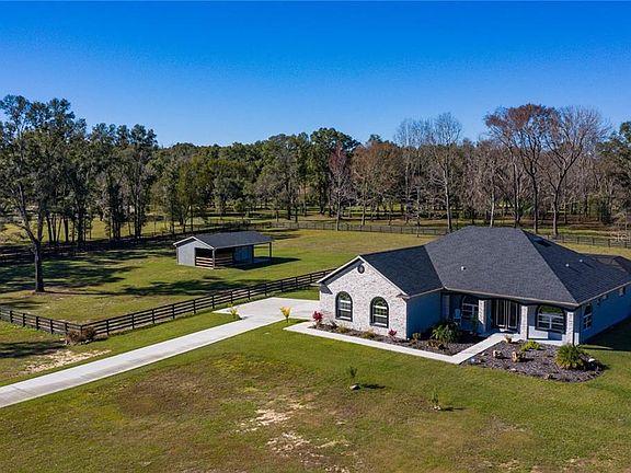 This first class 4.5+ acre mini farm is located in horse-minded community of Equestrian Springs close to main roads, shopping, and equestrian venues; it's less than 15 minutes to Golden Ocala and the new World Equestrian Center! This lovely farm includes perfectly maintained board and no climb fencing for the safety of all your furry friends. The 2018 home features wood tile floors throughout, contemporary fireplace, skylights, stunning island kitchen with stainless appliances, gorgeous cabinetry, and granite counters, and an over-sized garage. There are two master suites, and plenty of large windows letting in the Florida sunshine, plus glass doors out to the inviting screened-in outdoor living and pool area; this is a great place to unwind, take a refreshing dip in the saltwater pool and enjoy the view of your pastures and woods beyond. For your horses is a 2-stall barn with large feed and tack storage room. This pristine farm is ready for you to move in.