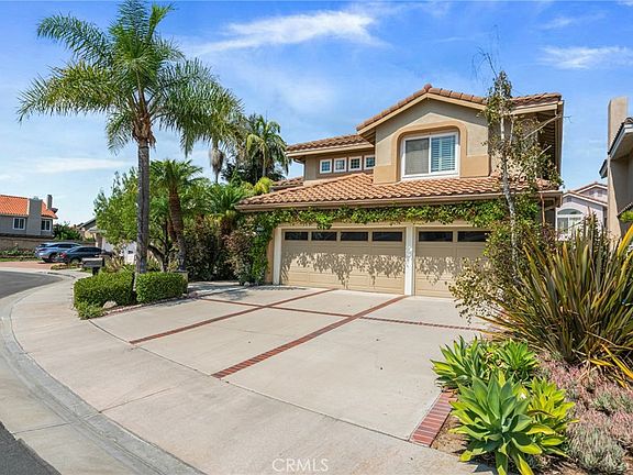 Tucked in at the end of a nice, long interior cul-de-sac, this Cypress Collection at Sorrento Plan Two home has so much to offer: a large, inviting backyard, spacious living areas, beautiful crown moldings, recessed lighting throughout, plantation shutters, attached garage with direct access and ceiling fans in nearly every room. When you enter, you are greeted by the commanding vaulted ceilings of the Living Room and formal Dining room with backyard access via stately French doors. The downstairs boasts 2 gas-fired fireplaces, Travertine tiles and warm, Hickory hardwood flooring as well as the downstairs bedroom/office and FULL bath. The updated kitchen has gorgeous Corian counter-tops, a large pantry and ENERGY STAR Qualified appliances. Upstairs consists of a LARGE bonus room plus three more bedrooms: two that are joined by a custom bathroom with dual sinks and the primary bedroom with its high ceilings, ceiling fan, and cozy wood floors and two large walk-in closets.