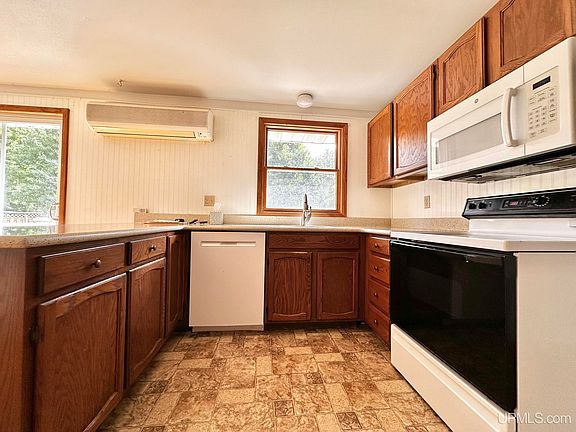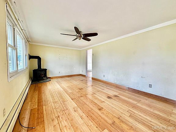 Bring your vision and make this house your home! Offering 4+ bedrooms and 1.5 baths, this property provides plenty of space and opportunity. The main floor features a large living room, a dining area with access to the deck and fenced backyard, and a kitchen with ample storage and workspace. Three bedrooms and a generously sized full bath and a 1/2 bath w/ first floor laundry complete the main level. The basement adds even more living space with a family room and two additional bedrooms, both with legal egress. Outside, the detached garage has been converted into a finished space-perfect for a recreational building, man cave, or even a potential guest suite. Prefer a garage? It can easily be converted back to a 2-car garage. Located in a desirable neighborhood with Breitung Township taxes, this diamond in the rough is just waiting for a little work and love to truly shine!