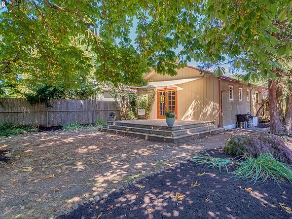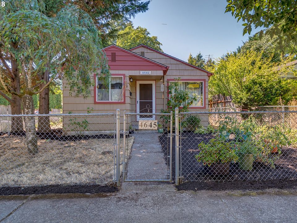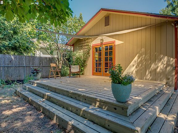 Charming one level bungalow, thoughtfully cared for and updated. Beautiful refinished hardwood floors, newer windows, non-conforming 3rd bedroom or office with closet. Remodeled bathroom and spacious master bedroom with French doors to the back deck. Laundry/mud room with large sink and man door with easy access to side yard. Level, fenced yard has raised beds. Corner lot for privacy! New FoPo food carts only blocks away!