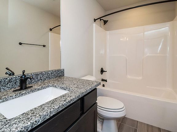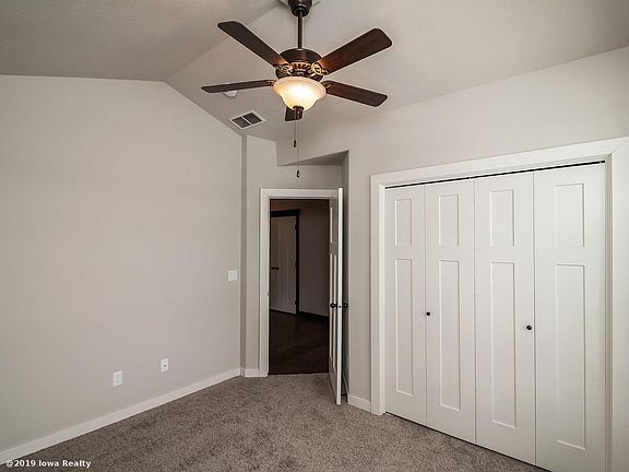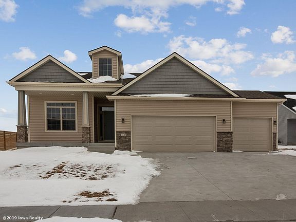 Summit V ranch on a daylight lot in beautiful Fox Valley of West Des Moines 10' flat ceilings and hardwood floors extend throughout the entry, hallway, living, and kitchen/dining areas. Fireplace and wood mantle. Kitchen features granite counters, soft close drawers, and dining area. The Master Suite has trayed ceiling and fan. Master bath features a 4' x 4' tile shower, tall double vanities and water closet. Two additional bedrooms have vaulted ceilings/fans and shared bath with granite counters and tile floors. First floor laundry doubles as a drop zone. The daylight basement is stubbed for a future ¾ bath and can be finished. 3 car garage (oversized double and rear covered deck round out the main features of this beautiful home. Oil rubbed bronze throughout home.
