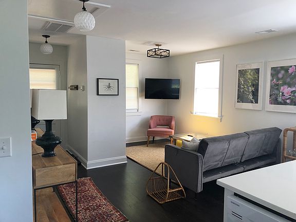 This upstairs flat is located in the trendy Park Circle neighborhood in North Charleston, 12 minutes from the Historic Downtown Charleston. Park Circle is a revitalized community and has been voted #1 neighborhood in the Charleston area. It has also been called "The Brooklyn of Charleston." The flat is perfectly located across the street from restaurants and The Station, a gift and homeware shop. You are also a couple blocks from the vibrant Olde Village with more restaurants, coffee shops, wine bars, breweries and more. Centrally located to the airport, downtown and most of the boroughs of Charleston. This 1 bedroom / 1 bath flat is an entire house rental with no other rentals on site. It is above a storage space of which I store furniture. It was totally renovated a few years ago and offers hardwood floors, fully equipped kitchen with dishwasher, washer/dryer, internet and Smart TV. This fully furnished apartment home is $2000 per month and includes utilities, trash, internet and yard maintenance. It is available December 1 in increments of 1 month.