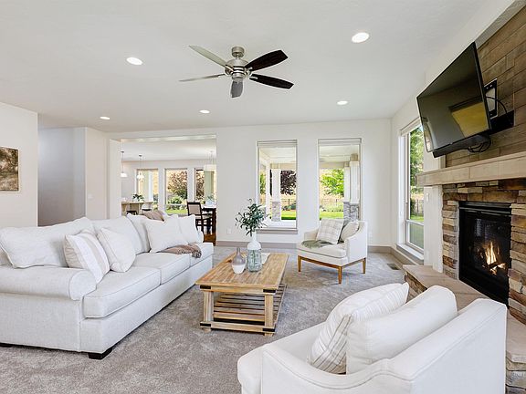 Spacious two-story Energy Star Certified home on a .298-acre lot with no rear neighbors, a fenced yard, and a 5-car garage with a 9-ft boat door. Bright and open layout with large windows, new carpet, and ample storage. Includes an en suite bedroom with walk-in closet and a main-level office or 5th bedroom. Ideal for entertaining, featuring a great room with stone fireplace, large dining area, and gourmet kitchen with walk-in pantry, spice rack, 5-burner gas cooktop, double oven, and breakfast bar. The vaulted primary suite offers a luxurious bath with double vanity, soaker tub, make up table, dual shower heads walk in tile shower, and walk-in closet. Additional highlights: loft bonus area, utility room with sink, built-in speakers, and covered front and back patios. Beautifully landscaped throughout. Please see attached amenity list for more details.