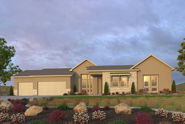 This stunning ranch plan features an oversized kitchen, great room and nook that are connected to an outdoor room, a formal dining room, study, guest casita and a 3-car garage. The primary bedroom has a large spa-like bath and walk-in closet with access to the laundry room. Choose from multiple basement finish options to add finished living space, bedrooms and bathrooms.