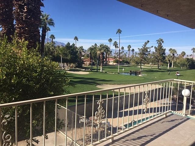 South Palm Desert 2BR, 2BA. Incredible VIEWS, incredible VALUE. Upstairs 1-level unit. Large back patio backs right up to Shadow Mountain Golf Course with amazing golf course, mountain, water views. Pool with nice backyard view. HUGE living room/dining room area, washer/dryer, lots of storage. Walk in closet in master BR and lots of storage throughout. Nice small 4-unit building with 1 car garage parking and plenty of street parking. Walk-in closet in master, large bedrooms, microwave. MUST SEE. Walk to El Paseo. Wet bar. 1000 sf. Sorry, no pets. This is a non-smoking building. Month to Month