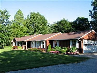 Set back off the road is a 3 bedroom 2-1/2 bath Ranch on 5 gorgeous scenic acres. A large Living Room is open to the Dining Room. The updated Kitchen looks to the Family Room and wood burning stove. Relax looking out to the picturesque back yard and pool. A nature and bird lovers paradise in your own back yard! The Master Suite with full bath has access to the private side yard patio. 2 more bedrooms, an updated hall bath and Laundry Room complete the East-wing. A 3-Season Room and 1/2 bath are located off the Kitchen. Large 2 car garage. Raised bed gardens, a storage shed and room to roam. A must see property!