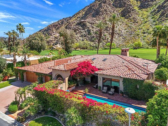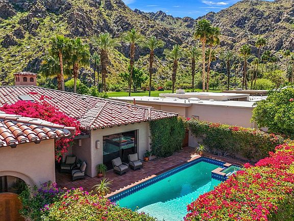 This custom designed Spanish style home takes full advantage of the mountains and golf course beauty. There are 4,000 square feet of breathtaking views from everywhere in the house, paired perfectly with the modern conveniences of a recently built home. Large pocket doors line the back wall, inviting the outside in as you take in the 5th fairway of the historic Classic course and expansive mountain views in the back yard. The private courtyard hosts the salt water pool and spa and has an equally mesmerizing panorama of the area's natural beauty. With 3 large fire places and a fire pit, you will have indoor/outdoor gathering spots to enjoy nature from everywhere in the home. A mix of hardwood floors and Spanish saltillo tiles combines with Spanish tile in the kitchen and bathrooms to accentuate the early Southern California feel. Wolf, twin Sub Zero appliances, and custom cabinets create a gourmet kitchen complete with a large island with built in refrigerators. This home was built to entertain. All 4 bedrooms have custom en suite baths and views that will have your family and guests wishing to stay longer. The patio was built with a misting system, built-in heaters, speakers, TV, and oversized fire pit.This home is offered turnkey furnished and ready for the new owner to enjoy the best of Indian Wells Country Club living.