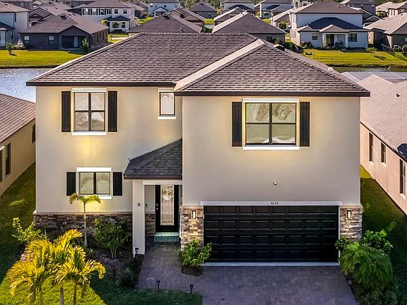 UNDER CONTRACT! Located in the highly desired Sawgrass Lakes of West Melbourne, this beautiful, move-in ready fully upgraded built in 2020 traditional style single family home is located on a premium lakefront lot. Upon entering the community, you will be greeted by a whimsical ambiance with a breathtaking combination of lush greenery, multiple water fountains and Brevard's only 2-story water slide, ready for your enjoyment. Safe neighborhood with low HOA and low crime rate! Nested within Sawgrass Lakes' newest, gated community, The Willlows, this house provides plenty of curbside appeal with upgraded landscaping, stone elevation and modern black garage door, front door and shutter combination, with 2-car garage. Upgraded wood-like tile floors greet you throughout the entire first floor. Enjoy the fresh interior paint and a bright and open floor plan seamlessly connecting the kitchen to the living and dining room. Delight yourself in the ambience of the glistening lake and warm sunset from the luxury of the upgraded, extended screened-in lanai. Meticulous attention to detail is presented in the kitchen with eased edge quartz countertops, customized backsplash, freshly finished upgraded cabinets and accent handles, including stainless steel appliances. Enjoy the oversized Primary suite bedroom equipped with a bonus extension, walk-in closets, double sinks, and a luxury bath tub with separate shower combination. Lakefront views from your bedroom, and private door to your lanai from your bedroom. Upstairs you'll find another full bathroom, 3 additional bedrooms, and a loft that provides additional flexibility such as a theater room. Projector Screen and HD Bluetooth Projector included! The backyard is fully fenced-in and a large patio provides plentiful space for fun and entertaining. The property is located just minutes away from the I-95, making it ideal for commuting. Close to Northrop, L3 Harris, Hospitals, and many more work locations! Robust shopping centers with an impressive list of retail stores, restaurants and a movie theater are just a short distance away. Take advantage of West Melbourne's flourishing development and exemplary school district as well as emergency services with a police and fire station nearby, giving your family a sense of security and peace of mind. Buy your dream home in the City of West Melbourne with less crime than Palm Bay, making this community a hot commodity. Sawgrass Lakes features the County's only 2-Story Water Slide and enjoy your time year round at the Splash Pad for your family/guests to splash around. Gated Community, great for retirement or a family, with great schools nearby!