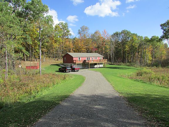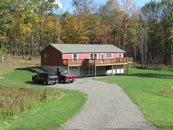 Clean, well-maintained, move-in ready 6 yr. old ranch on 4.5 peaceful, private and quiet country acres! Just 10-15 min from all the conveniences of Corning, Big Flats, Horseheads, etc. Many rooms with fresh paint. Kitchen has maple cabinets w/stainless appliances. Huge master bedroom & bathroom. Master bath has jet tub, glass shower, electric fire place, and TV hookup. Main floor laundry. Sprawling, wrap around deck to relax on, watch the deer and other wildlife. DRY, full walk out basement has approximately 1100 sq. ft., dry-walled and ready for your plans. House also comes with a pellet stove, and a separate electrical box and generator "plug-in" to run the house on your generator.