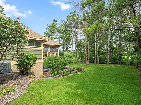 stainless steel appliances and most importantly, right in the middle of the home. The kitchen flows into the living/great room with vaulted ceilings, rich wood beams, and natural brilliant light. Primary bedroom with shower, tub, dual sinks, walk in closet and adjacent laundry room. Walls of Pella windows on upper and lower levels facing east for beautiful morning light. Offices located on both main and lower levels. Custom sauna located adjacent to lower level bathroom. Family room with wet bar is perfect for family celebrations and entertaining. 2 lower level bedrooms situated next to a full bathroom. Private park-like setting with beautiful mature trees and pond in the backyard. Enjoy the outdoors from the 27x16' lower patio, upper screened porch, open deck or even in the back of the yard amidst the tall trees. A wood duck house at the edge of the yard is a treasured part of the property. Unique tucked away location is in a perfect position with easy access to 35E & Hwy 61 to enjoy the best of the Hugo, Lino Lakes, White Bear area, St. Paul, Minneapolis, & the Twin Cities. Plus, you're on the north of the metro to drive up to the majestic north shore and beyond.