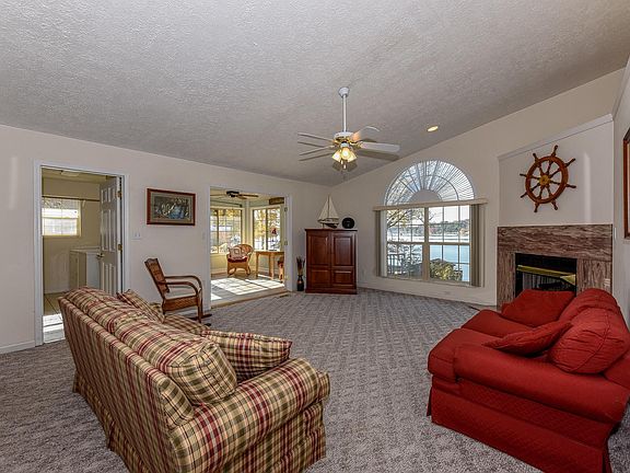 Enjoy East Tennessee lakefront living in this brick basement rancher situated on Ft Loudon's main channel. Great year round home or weekend retreat w/plenty of room for guests! Features include kitchen opening into dining area & great room w gorgeous marble fireplace & cathedral ceiling. Master suite is on the main as well as 2 additional bedrooms & a full bath. Sunroom is conveniently located off the great room. Finished walk out basement has family room w/ bar area, full bath, additional bedroom, workshop, & garage. Yard gently slopes to the lake where you'll find the boat dock & powered boat lift. More storage in the basement & Boat Port. 2003 Chaparral Sunesta 223 deckboat may be purchased separately at a great price!