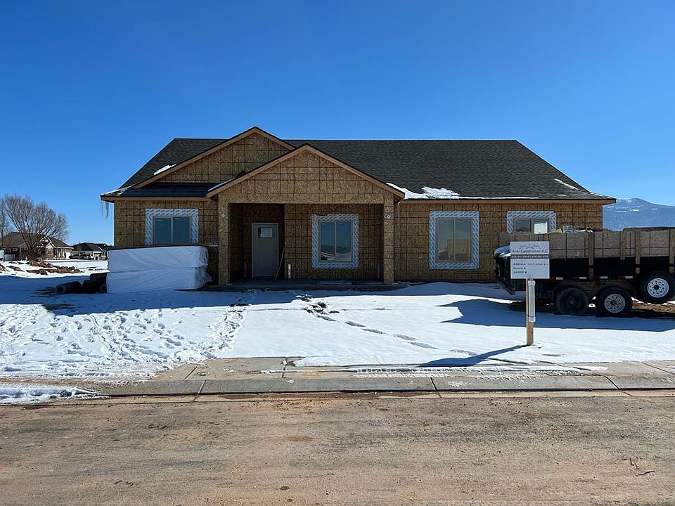 Beautiful 3 bedroom, 2 bath new construction home built in quaint Deer Hollow Subdivision. This single-level home has 10 ft. ceilings in the entry, main living and the master. It has a cozy gas fireplace, an inviting covered front and back porch, and LVP flooring in the main living areas. The kitchen has a huge pantry, white cabinets and beautiful granite counters. The exterior has a rock wainscot and Hardie siding front and stucco on the the other three sides. You will fall in love with the details that are rare in homes in this price range such as coffered ceilings, tray ceilings, tiled showers, duel shower heads, shower door and custom window wraps and sills. The home is on a highley desired corner lot with a side entry garage. Estimated completion is 5/15/22.