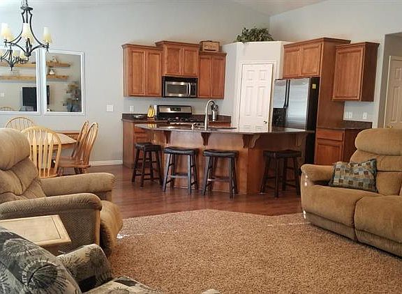 This 6 bed 3 bath home has been very well cared for. Immaculate landscaping, great views of the mountains, plenty of room to enjoy the wide open space. Inside is newly painted. Open floor plan, granite counters throughout, functional master bed bathroom. 3 bedrooms on the main floor, and 3 bedrooms down stairs (1 bedroom is a guest bedroom, does not have egress).
