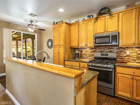 Welcome to this inviting home in a desirable neighborhood. 4 bedrooms, 2 bathrooms with lots of extras and well taken care of. Extra space in the garage has a room with heat, air & electricity currently being used as craft room that fits a long arm quilting machine. Not taking away from garage parking, this room can also be used as a workout room, office, etc. The kitchen has beautiful custom-made cabinets with pull out shelves and quartz countertops. A coffee bar was recently added as an extension to the kitchen cabinets in the breakfast nook. SOLAR is OWNED & paid for. Newer(2022) HVAC system is all electric. The backyard is set up for entertaining or if you prefer a peaceful area to relax and enjoy the scenery of the Koi Pond. The patio cover offers shade and also lets some light in with the skylights. The master bathroom has been upgraded with a walk-in shower and a quartz countertop. Outdoor sheds are included for extra storage and a wood burning stove on the back patio. New in 2024: Air ducting, seamless rain gutters, refrigerator, dishwasher and a 40 gallon water heater. No HOA and low tax assessment of approx. $178. per year.