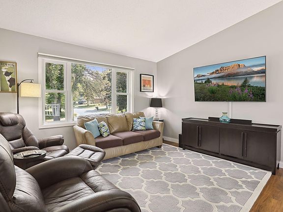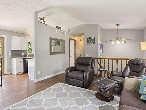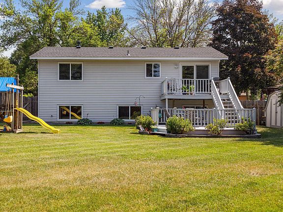 Welcome to this well maintained 1 owner home. Situated on a .28 acre lot with expansive rear yard enclosed with a privacy fence. Step inside to find a light open feel between the main living areas, with vaulted ceilings & new wood floors throughout. The kitchen was completely redone in 2020 & features white cabinets, tiled backsplash, quartz countertops, new lighting, all new appliances, & pantry closet. The dining area has sliding glass doors that lead to a 2-level deck. The primary BR is generously sized with plush carpeting & walk-in closet. The lower level has a cozy family room, a 3rd BR, & 2 additional rooms which could be used for home office(s), play space or nonconforming BR's. Both the main & lower-level baths have also been completely redone! Updates include new furnace, roof, siding, windows, water heater, water softener & more! Outside, you'll love the large yard! Mature evergreens border the backyard. Outdoor shed & playset also!