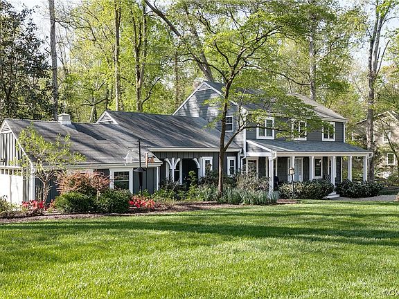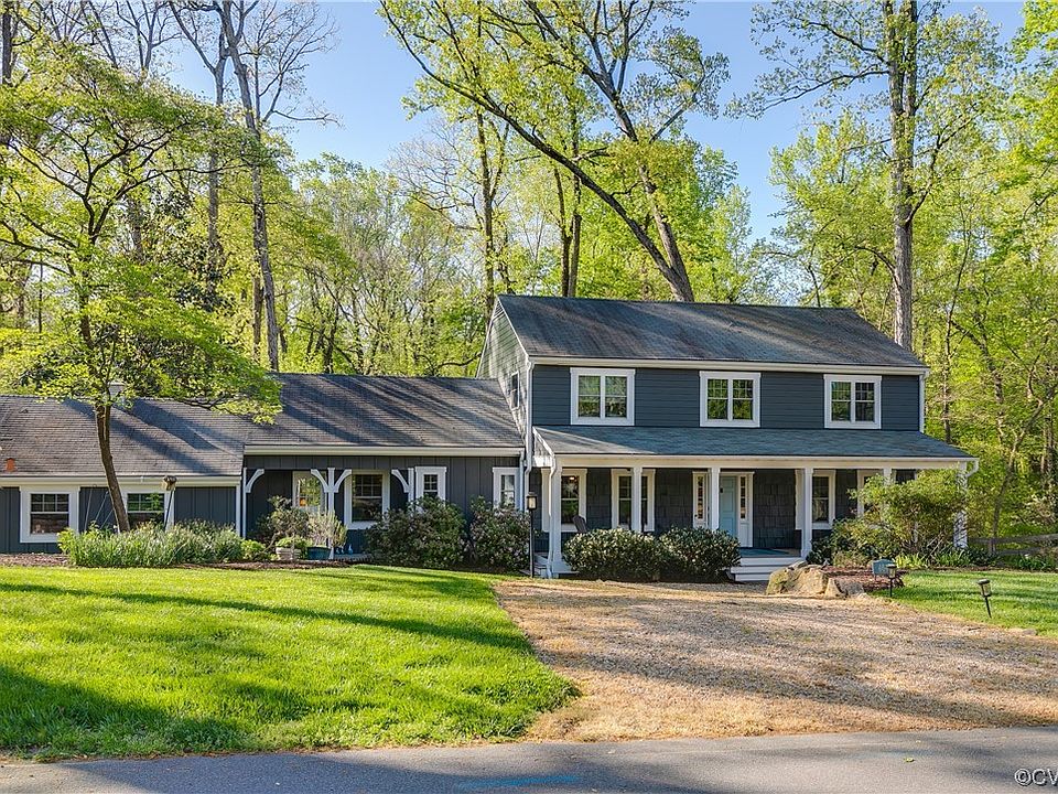 Truly an oasis on the city! Located on a cherished cul-de-sac in Oxford on the James and steps away from the James River and walking trails, the grounds on this 1.1 acre lot are beyond enchanting and offer the option of relaxing on the covered front porch OR enjoying the setting from the rear deck where nature abounds including views of Rattlesnake Creek OR play with pets in the fully fenced side yard. First floor Primary Suite with walk-in closet and RENOVATED bath with soaking tub + shower & double vanity. Formal Dining Room, large eat-in Kitchen with gas fireplace opens to Family Room with gas fireplace + vaulted ceiling. 2nd level offers Primary Suite #2 with walk-in closet & bath + 2 generous bedrooms with updated hall bath. Sun-filled walk-out basement Rec Room with 3 closets + private Office/Workshop/Studio with fireplace + 2 additional storage rooms. Attached 2-car garage + semi-circular driveway offers off-street parking. An aviary on the property could easily be converted to a greenhouse or play house + attached shed. Newer replacement windows throughout. Good attic and basement storage.
