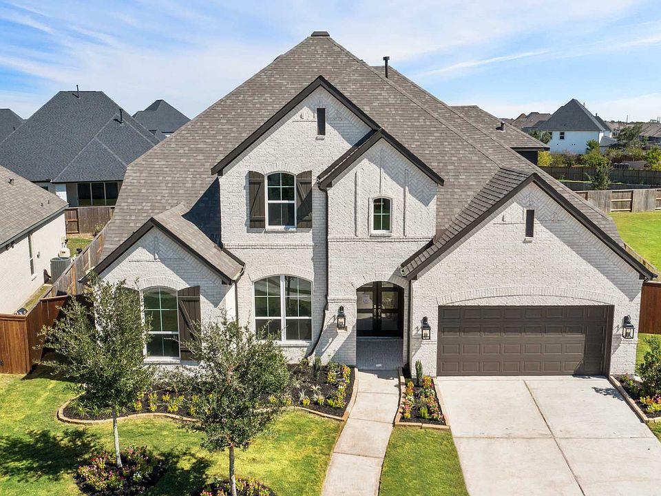 Our very popular model home 222 plan boasts a grand entry foyer leading to two bedrooms, study, and media room all downstairs. The Premier Farmhouse kitchen has beautiful two-toned cabinets, quartz countertops and is open to kitchen dining and family room with 20ft ceiling. Kitchen hutch, separate formal dining and don't miss secondary bedroom with seating area. Extended primary and back patio.