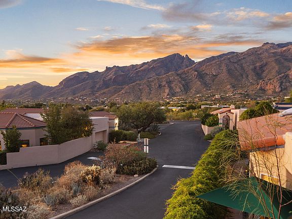Welcome to your dream home in the prestigious Catalina Foothills, where modern luxury meets breathtaking natural beauty. This masterfully remodeled residence offers unparalleled mountain views and a seamless blend of contemporary style and comfort. The grand Alder wood front door sets a sophisticated tone upon entry. Step inside to discover a spacious layout featuring 2 generously sized bedrooms and 2 elegant bathrooms, each adorned with Cararra White marble vanities. The luxury vinyl flooring flows effortlessly throughout the home, while the absence of interior steps enhances accessibility and convenience. The heart of the home is the designer kitchen, a culinary masterpiece with striking quartz countertops and new high-end stainless steel appliances. The laundry room is complete with 2 state of the art all-in-one machines. This home boasts numerous updates, including new windows to take in the views and new lighting to illuminate every room. High ceilings amplify the sense of space. The gated courtyard and rear patio offer a charming, incredibly private outdoor retreat, perfect for relaxation or entertaining, while enjoying the stunning mountain views. Additionally, the 2-car garage features a pristine epoxy floor, providing ample parking and storage. Located near premier shopping, golf courses, restaurants, and art galleries, this home offers a rare opportunity to embrace a refined desert lifestyle. The remodel is flawlessly executed and this exceptional home is move-in ready for its next discerning owner.