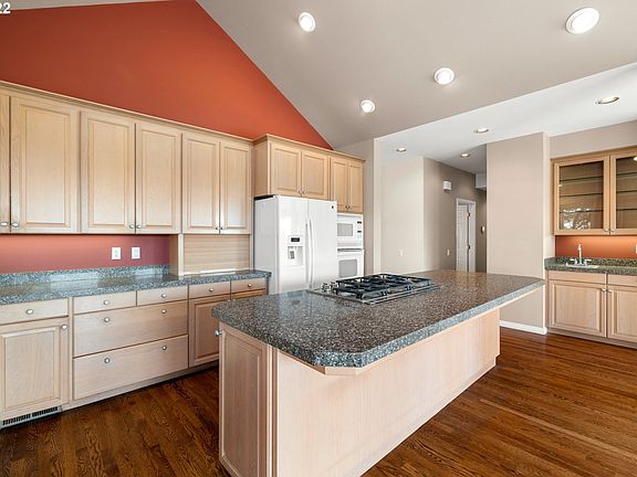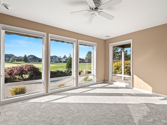 Luxury golf course living in NW Portland's premier 55+ community. Enjoy serene views from the natural-light filled home that enjoys soaring vaults, a large wall of windows & well-placed skylights. Enjoy the views from the generous kitchen, family room & main level primary ste. with spacious en-suite bathroom. The formal living & dining rooms are large & warmed by a fireplace. Office (4th bdrm) w/ built-ins on the main level. Community club house with pool and tennis. Ask for amenities list