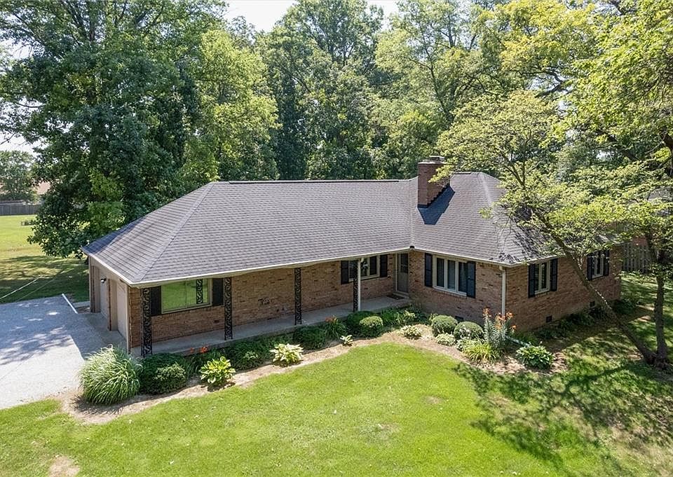 Put this custom brick ranch on your MUST SEE list! This desirable home has been meticulously maintained and has 3 bedrooms, 2 baths & abundant living space. The versatile floor plan offers a living room, family room, open kitchen & dining room, well appointed bedrooms plus a main level laundry. The dry basement with finished ceiling is full of possibilities and would make a perfect game room, home office, workshop or hobby room. Additional amenities include updated bathrooms, updated kitchen, double sided brick fireplace, large covered front porch and patio. All of this is situatied on a STUNNING 1.49 acre lot with mature trees which provide shade and dappled sunlight on much of the lot. Private, yet close to restaurants and shopping.