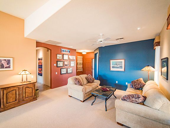 Lovely home has a panoramic mountain view in back and gorgeous updated bathrooms & 2nd BR with built in desk and cabinets. A new HVAC was installed in April 2017. You are going to love the great room concept, vaulted ceiling in great room, and the stunning mountain views that can be enjoyed inside and out. The kitchen boasts both a breakfast nook and bar; newer white Samsung appliances as well as Corian C-tops. Other features include: attic exhaust fan & central vac. In back you'll find a Pergola that adds shade as well as a breathtaking mountain view. Good houses are moving quickly in Green Valley...don't wait or it will be gone.