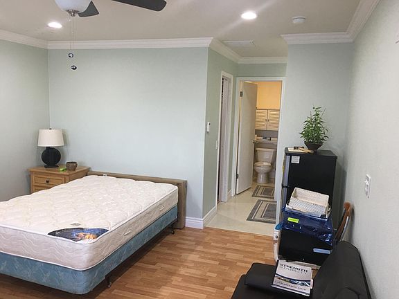 Beautifully maintained "studio" unit (attached to single family home) with its own entrance. Completely furnished (with refrigerator and microwave) and a full bath with tub and shower. Freshly painted interior, laminate floors, crown moulding, and central heat and air. Light, bright, and open. Located within the Crossings' community with easy access to the community pools, tennis/basketball courts, and greenbelt. Don't miss it! One year lease. $1200 per month and $1200 security deposit. NO PETS.